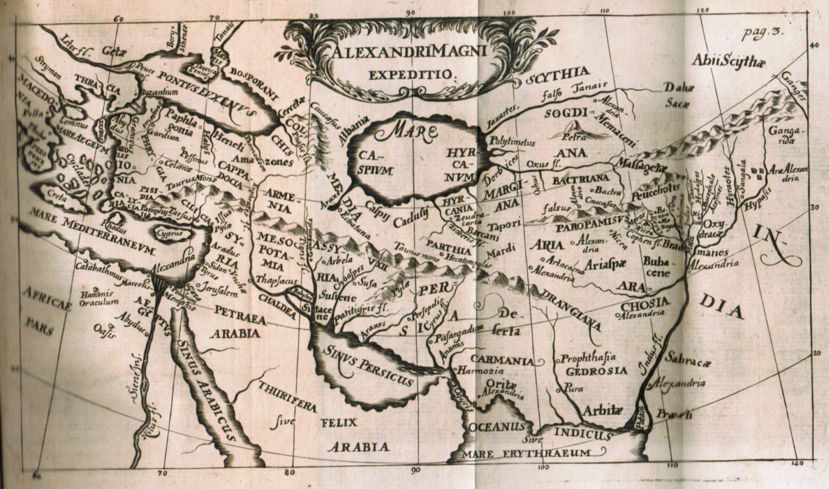Curtius Rufus, Q. De rebus Alexandri Magni historia superstes. Recensuit etiam Supplementis, Commentariis, Indicibus & Tabulis Geographicis bisque omnibus novis illustravit Christophorus Cellarius. Editione secunda. Mit 3 gefalt. Karten. Leipzig, Friederici Gleditsch 1688. Kl.-8°. Titel, 16 Bll., 609(75 = Indices) S. Überlappendes Perg. (minimal berieben u. bestoßen, etwas angestaubt, gedunkelt). Erste Ausgabe von Cellarius. Vgl. Schweiger II, 321 f. „Die Ergänzungen von Bruno schienen ihm zu kurz u. dürftig, die von Freinsheim aber zu weitläufig; er fertigte daher Supplemente welche die Mitte zwischen beiden halten sollten. Seine Noten sind nicht ohne Wert.“ – Bei Schweiger wird der Verleger „Fritsch“ angegeben. – Titelblatt am Bund mit kl. Abriss (geringer Buchstabenverlust), ohne den Kupfertitel, papierbedingt teils stärker gebräunt, minimal fleckig, mit vereinzelten Anstreichungen u. Anmerkungen mit Bleistift oder mit Tinte, dies v. alter Hand, Besitzvermerk v. 1736.