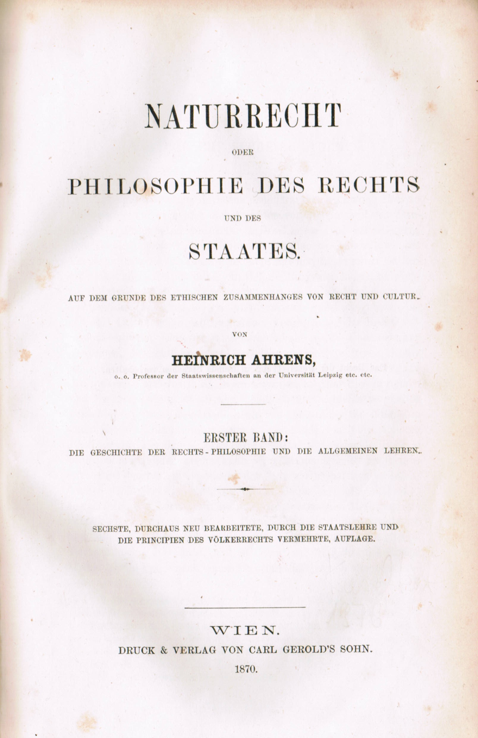 Ahrens, Naturrecht oder die Philosphie des Rechts und des Staates. Auf dem Grund