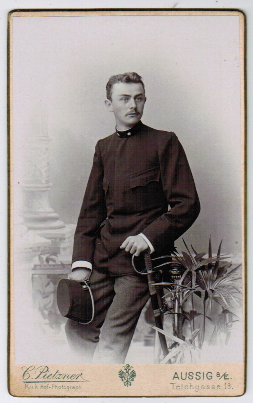 Photographie – Photoalbum mit 39 Portrait-Photos (davon 9 weibliche Abgebildete) von meist dresdner und schlesischer Photographen. Um 1890-1906. 4°. 14 Papp-Blätter mit je 2 bzw. 8 Stecktaschen. Tief geprägtes u. gefüttertes Ldr. mit 1 Schnalle u. Ganzgoldschnitt (etwas, vor allem die Ecken, berieben). Photographen u.a.: Taggesell (Dresden), Wilhelm Schmitz (Borken), A. Scholz (Liegnitz), Strom & Walter (Berlin), Carl Dübell (Wien), Max Baum (Dresden), Martin Herzfeld (Dresden), Richard Zähnig (Dresden), Julius Casparius (Liebau i. Schlesien), Gerhard Niepel (Friedeberg), Paul Lesse (Berlin), Pietschmann (Hirschberg), N. Raschkow (Breslau). – Nur teilweise gefülltes Album, ausschließlich mit Photos im Format 10,3x6,5 cm. Zahlreiche Stecktaschen eingerissen.