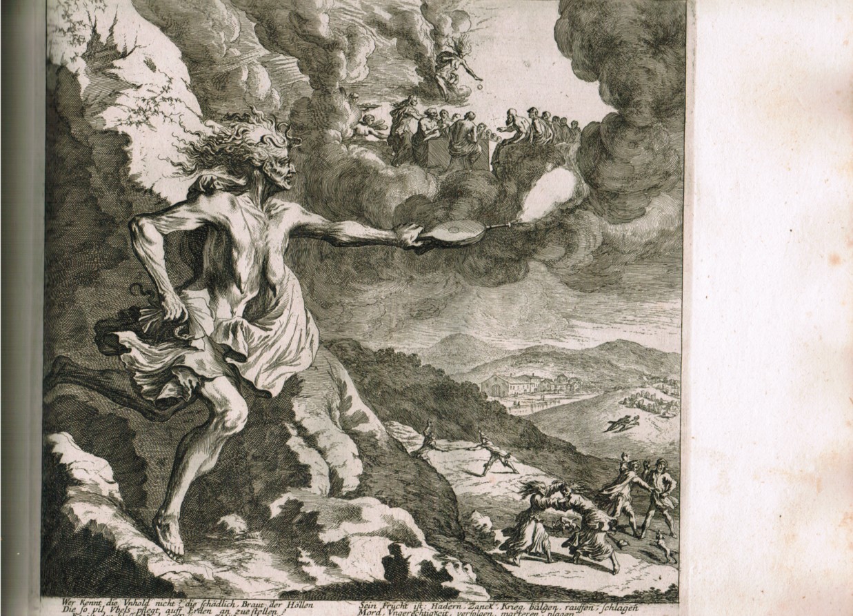 Baur, Johann Wilhelm. Sammelband mit 7 Titeln. Mit 143 (von 145) Kupferstichen u. 2 Kupfer-Titel. Augspurg (sic), Johann Ulrich Kraus um 1700 (der 2. Teil ist auf 1703 datiert). Quer-4°. Flexibles HPerg. m. handschriftl. R.-Titel v. alter Hand in neuem Schuber (berieben u. bestoßen, Deckel angebrochen u. Fehlstellen im Bezugspapier, hinteres Außengelenk leicht angeplatzt). Kupferstichfolge von Johann Wilhelm Baur (1607-1640), gest. von Melchior Küsel (1621-1682). – Teil 1: Zu Erweckung der Andacht dienende Betrachtungen über das Bittere Leiden, Sterben und Aufferstehen unsers Herrn und Heylandes Jesu Christi. In anmuthigen Kupfern vor Augen gestellet, von Johann Wilhelm Beurn anfangs gezeichnet, und von Melchior Küsel in das Kupfer gebracht. Titel-Bl., Kupfer-Titel, 2 Textbll. u. 24 Kupfer. Teil 2: Augen und Hertzen belustigende Abbildungen der Höchsttröstlichen Historie, Wie der ewige Sohn Gottes… (1703). Titel-Bl., Kupfer-Titel, 1 Textbl. u. 33 Kupfer. Teil 3: Sinn- und Lehrreiche Emblemata. Titel-Bl. u. 18 Kupfer. Teil 4: Anmuthige Palatia u. Prospecten so in Italien hin und wider zu sehen seyn. Titel-Bl. u. 16 (v.18) Kupfern (es fehlen Bl. 14 u. 15). Teil 5: Allerhand Schöne und Prächtige Gärten u. Lust-Häuser So in Italien und denen benachbarten Provincien … Titel-Bl. u. 18 Kupfer. Teil 6: Schöne und Rahre Landschaften in Italien und anderen Ländern. Titel-Bl. u. 17 Kupfer. Teil 7: Allerhand Wunder-Würdige Meer- u. See-Porten. Titel-Bl. u. 17 Kupfer. – Papierbedingt minimal gebräunt, teils leicht stockfleckig u. minimal fingerfleckig, in Teil 1-3 im w. Rand kl. Wurmfraßspuren ohne Text- od. Bildverlust, Hinterdeckel u. erstes Titel-Bl. mit kl. rotem Sigel im w. Rand.