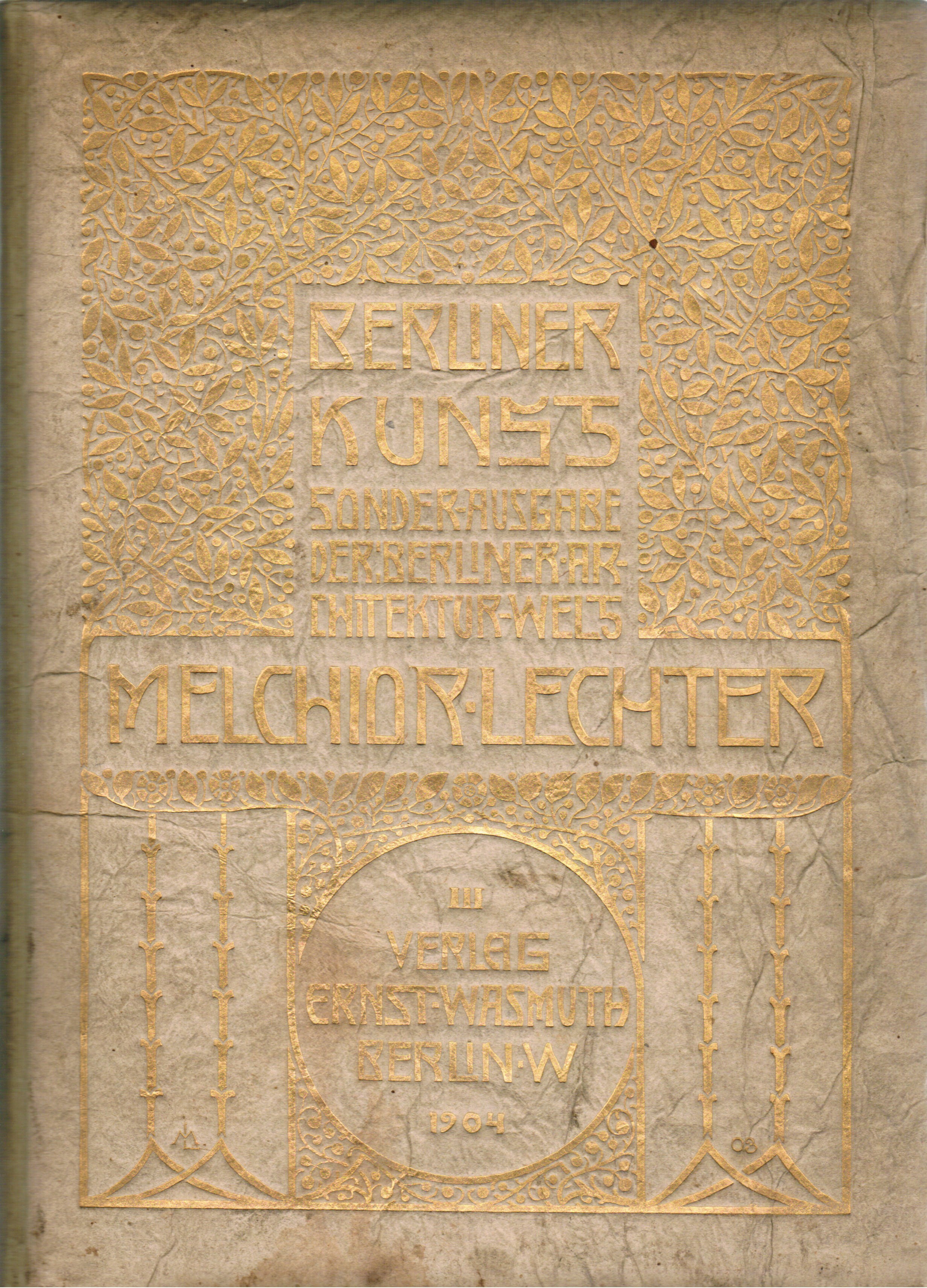 Lechter – Widmungsexemplar – Rapsilber, M(aximilian). Melchior Lechter. Mit zahlr. tls. farb. Abb. Berlin, Wasmuth 1904. 4°. 93(3) S. Gefütterter Orig.-Pappband mit hellgrauem, faltigen Papier bezogen u. mit reicher Deckelvergoldung u. Kopfgoldschnitt (etwas gebräunt und fleckig). Erste Ausgabe. Raub A 50. – Berliner Kunst. III. Sonderausgabe der Berliner Architekturwelt. – Auf der ersten weißen Seiten ganzseitig eine kalligraphische Widmung von Melchior Lechter: „In der Natur der Kunst/ ist alles Siegel, alles Spiegel./ Seinem/ Ottokar Menzel/ zum/ Hl. Auferstehungs-Feste 1932/ mit/ Heil und Segen/ von/ melchior Lechter“ in Grün, Blau und Gold. Der Empfänger Ottokar Menzel (1912-1945) war Historiker und 1943 in Kiel habilitiert worden, wo er als Privatdozent wirkte. Er nahm sich und seiner Frau im Februar 1945 das Leben. – Entgegen den Angaben von Raub hier mit Kopfgoldschnitt. Das Impressum gibt neben der Normalausgabe eine „Liebhaberausgabe“ in 100 nummerierten Exemplaren an, wovon 20 Exemplare in Pergament gebunden waren. Unter den bei Raub verzeichneten Einbänden werden allerdings nur vorliegender, die Pergamentausgabe und eine weitere Pappausgabe benannt. Wir hatten auch schon eine einfach Broschur. – Die erste umfangreiche Monographie zu Melchior Lechter.